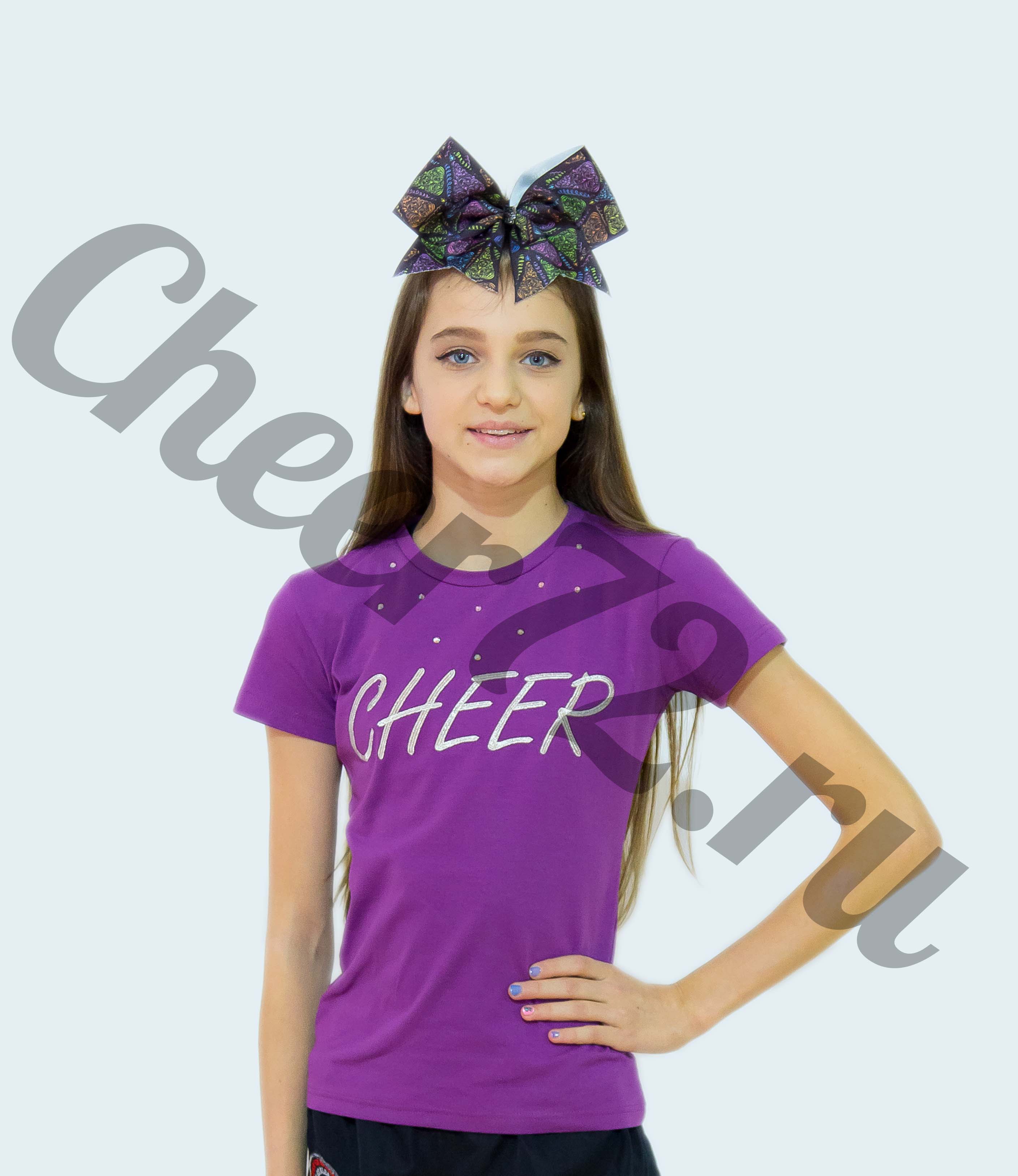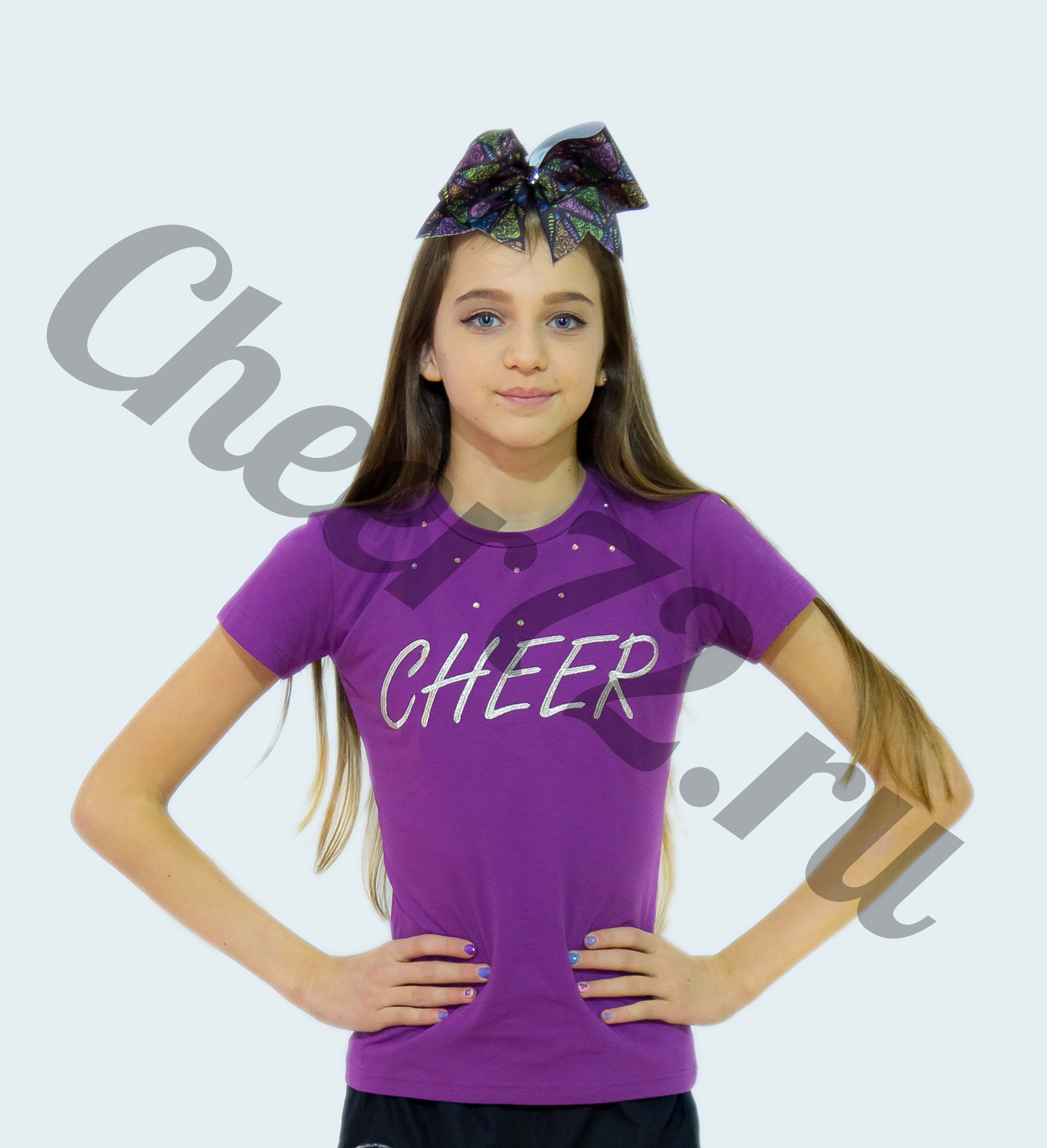 Футболка с вышивкой Cheer из серебряной нити, с инкрустацией кристаллами ???? Ткань: хлопок + стретч. Размеры на 10, 12 лет.